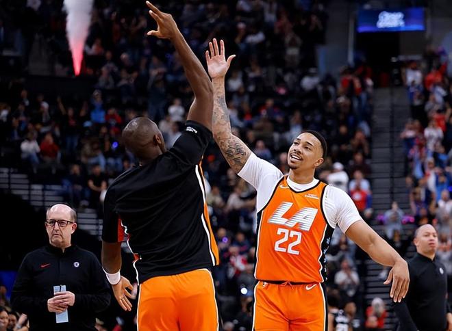 本場比賽中,快船的替補(bǔ)側(cè)翼新星喬丹-米勒(Jordan Miller)還是得到了進(jìn)入輪換陣容的機(jī)會(huì),而他在本場比賽中的整體表現(xiàn)也是值得肯定的。米勒全場出場13分39秒,投籃1中1,三分線外1中1,得到了3分3籃板1助攻的數(shù)據(jù),還有1次犯規(guī),正負(fù)值為+12。米勒在進(jìn)攻端沒有辦法得到足夠的球權(quán)和出手機(jī)會(huì)作為支持,但是他也是展現(xiàn)出了一定的投射能力,而且他也是具備一定的支配球能力和傳導(dǎo)球能力的??上驒?quán)確實(shí)是太少了一些,他在突破和自主進(jìn)攻方面的能力還是沒有辦法發(fā)揮出來。米勒在防守端的表現(xiàn)同樣是相當(dāng)不錯(cuò)的,同樣是能夠起到防守方面的作用的??傮w來看,米勒在本場比賽中算是發(fā)揮出了自己在攻防兩端的特點(diǎn),可惜出場時(shí)間實(shí)在是太少了一些,他還是沒有辦法在這種情況下打出更高水準(zhǔn)的表現(xiàn)。