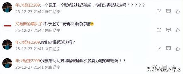 有球迷點(diǎn)評(píng)說道:“一個(gè)佩里一個(gè)張帆這球還能輸,你們對(duì)得起球迷嗎??”