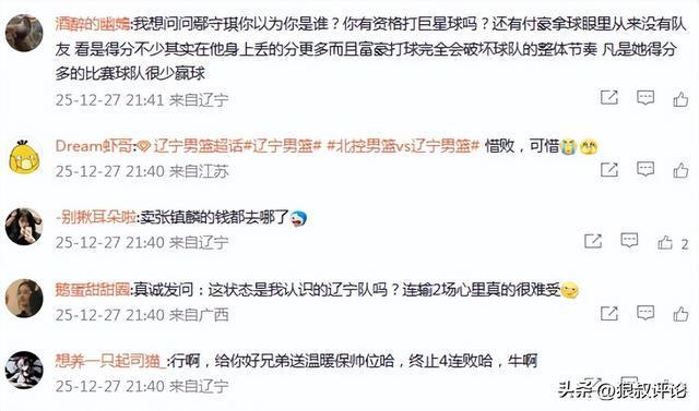 賽后,遼寧官方社媒遭到大量球迷留言,對(duì)于球隊(duì)單一的戰(zhàn)術(shù)體系表達(dá)不滿。本場(chǎng)比賽也是遼寧隊(duì)史第二次輸給北控,此前北控對(duì)陣遼寧的戰(zhàn)績(jī)?yōu)?勝26負(fù)。
