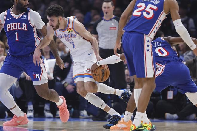 雷霆同樣遭遇兩連敗,過(guò)去六場(chǎng)比賽輸?shù)羲膱?chǎng),目前以26勝5負(fù)的戰(zhàn)績(jī)繼續(xù)排名西部榜首。然而,球隊(duì)沖擊勇士歷史最佳戰(zhàn)績(jī)的難度正在增加——連敗期間他們?nèi)炔粩绸R刺,且這三場(chǎng)進(jìn)攻明顯受制,單場(chǎng)得分均未超過(guò)110分,與其賽季場(chǎng)均121.3分的火力相去甚遠(yuǎn)。據(jù)數(shù)據(jù)媒體Polymarket的數(shù)據(jù)模型顯示,雷霆常規(guī)賽戰(zhàn)績(jī)打破73勝的概率已經(jīng)降到5%。