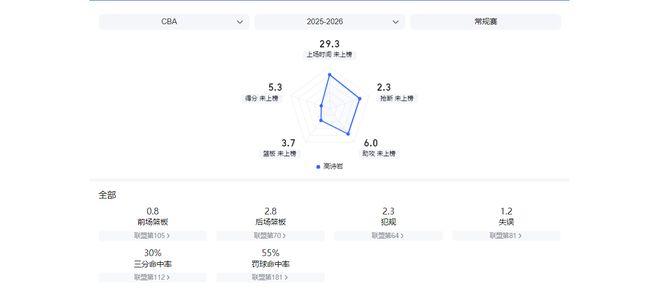 數(shù)據(jù)層面:本賽季6次出場后,高詩巖場均僅能為山東男籃貢獻5.3分,投籃命中率低至28.6%。