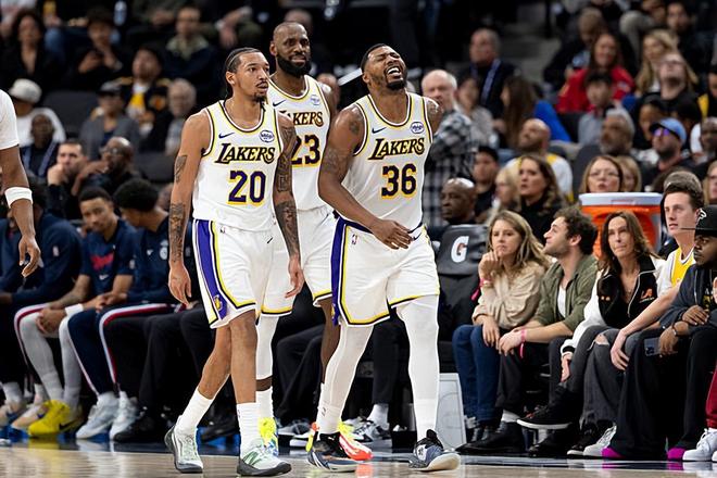 本場比賽中,湖人的先發(fā)后場大將馬庫斯-斯馬特(Marcus Smart)的表現(xiàn)還是相當(dāng)穩(wěn)定的。斯馬特全場出場20分25秒,投籃1中0,三分線外1中0,全場1分未得,但是也貢獻(xiàn)了3籃板2助攻1搶斷的數(shù)據(jù),還有1次失誤和3次犯規(guī),正負(fù)值為+10。斯馬特在本場比賽中的存在感其實并不高,關(guān)鍵的一點是,球隊其他球員在本場比賽中的狀態(tài)相當(dāng)不錯,手感都是非常出色的,普遍都能夠在進(jìn)攻端起到很好的效果。這種情況下,斯馬特也不需要在進(jìn)攻端完成更多的出手了。斯馬特在防守端還是保持了自己的水準(zhǔn),展現(xiàn)出了自己超強(qiáng)的個人防守能力。斯馬特在本場比賽中雖然在個人數(shù)據(jù)上看起來不太起眼,但是他也是為球隊的這場大勝做出了自己的貢獻(xiàn)。