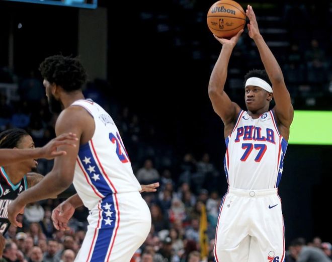 這次兩隊(duì)直接展開了對(duì)飆戰(zhàn),而兩位新秀的表現(xiàn)也是非常出色,76人的探花秀埃奇庫(kù)姆末節(jié)獨(dú)砍13分,加時(shí)賽命中準(zhǔn)絕殺三分,全場(chǎng)拿到25分6籃板4助攻?;倚艿?1號(hào)秀科沃德,16中10拿到28分16籃板,兩項(xiàng)數(shù)據(jù)都刷新生涯新高,可惜未能帶隊(duì)贏下比賽。