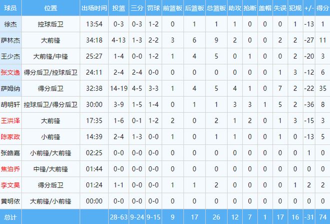第四節(jié)伊始,胡明軒連拿5分。北京隊(duì)快速作出回應(yīng),趙睿正面拋投打進(jìn),曾凡博底角再中三分球。經(jīng)過(guò)多次調(diào)整,廣東隊(duì)仍找不到快速縮小分差的辦法,隨著時(shí)間的流逝,比賽逐漸淪為垃圾時(shí)間。比賽還剩2分55秒時(shí),廣東隊(duì)換下薩姆納,啟用全華班。最終,北京隊(duì)105-74大勝?gòu)V東隊(duì)31分,送對(duì)手賽季首敗。