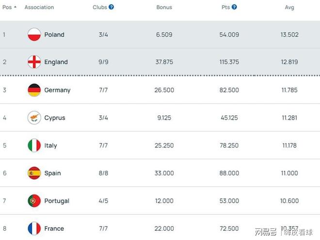 根據(jù)歐足聯(lián)最新的積分,波蘭聯(lián)賽和英超暫時排在前兩名,德甲、意甲、西甲和法甲紛紛進入前八。波蘭剩下參賽的三支球隊全部都在歐協(xié)聯(lián),一隊直通16強,兩隊需要參加附加賽,相信隨著賽事的深入,加上歐冠權(quán)重較大,波蘭的排名很快會下降。