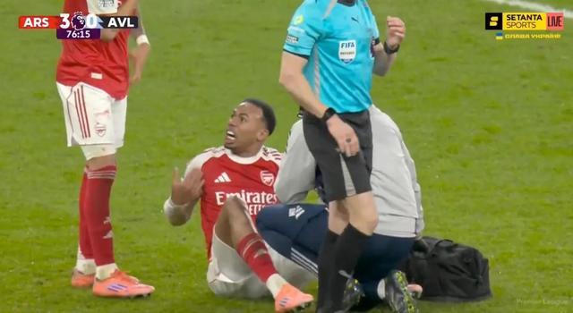 下半場(chǎng)比賽中,加布里埃爾受傷倒地接受治療,而他似乎被過來的隊(duì)友因卡皮耶踩中手指,隨后他迅速拿起手還甩了甩。