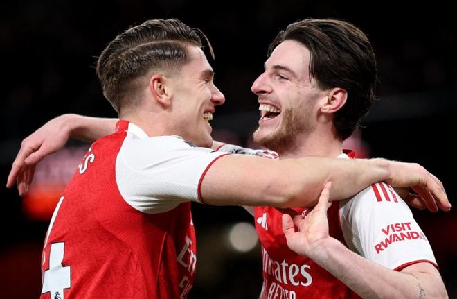 阿森納排出433進(jìn)攻陣型。薩卡、哲凱賴什和特羅薩德的進(jìn)攻三叉戟聯(lián)袂出擊。梅里諾、馬丁-蘇比門迪和厄德高組成3中場(chǎng)。賴斯、薩利巴、因卡皮耶和卡拉菲奧里4后衛(wèi)首發(fā)出戰(zhàn)。戴維-拉亞擔(dān)任首發(fā)門將。馬丁內(nèi)利、熱蘇斯、馬杜埃凱和埃澤坐在替補(bǔ)席待命。