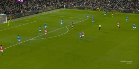 突前的中鋒更多時候都在跑位,右手側(cè)的隊友則不擅移動,只能在空間充裕的時候展現(xiàn)一些技術(shù)特點(diǎn),那么曼聯(lián)的右半扇就幾乎可以不用指望。