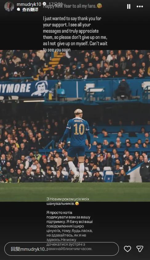2026年第一天,切爾西邊鋒米哈伊洛·穆德里克在社交媒體上發(fā)出了那段令人心碎的新年問候:“所以請不要放棄我,我也沒有放棄自己。”