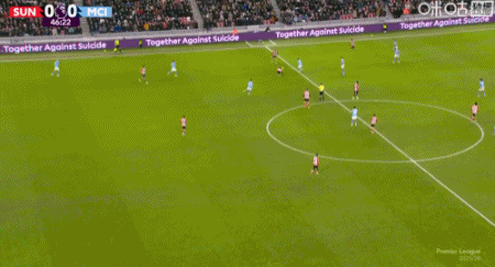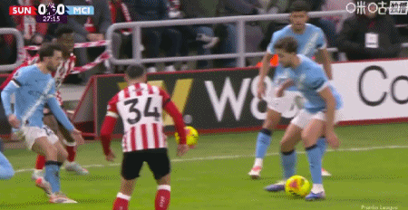 第34分鐘,福登橫傳失誤,馬延達(dá)打門踢偏